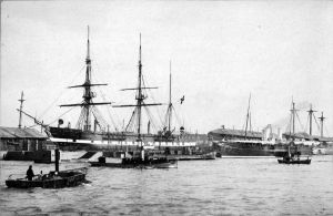 Hønsebroen med diverse skibe, forrest vagtskibet "Sjælland".