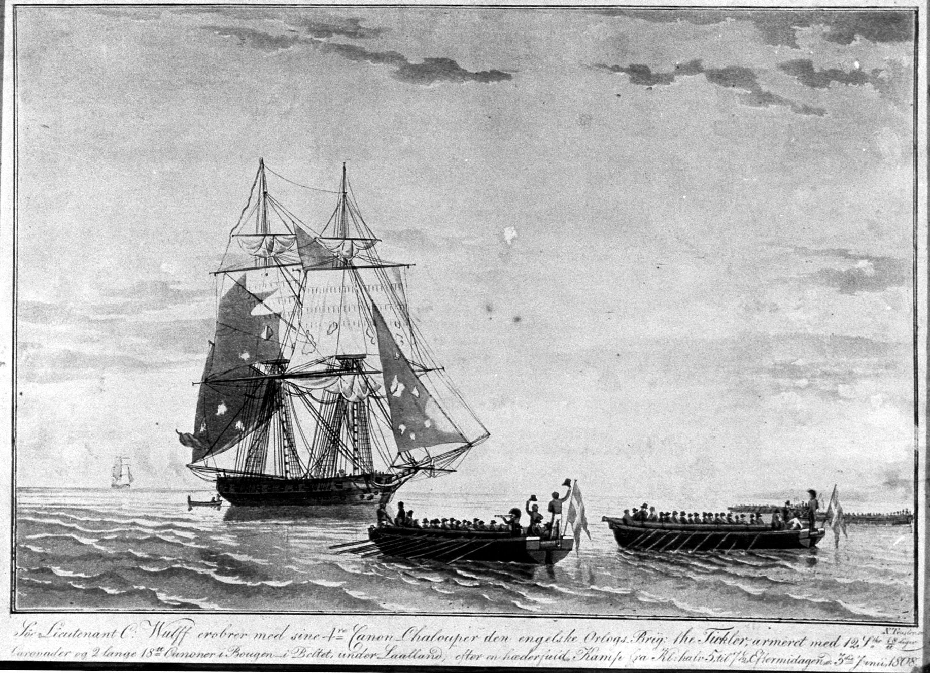 Foto: Erobringen af "The Tickler" i 1808 efter aquatint. Del af negativ.