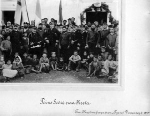 Foto: Gruppebillede. Prins Georg på Kreta, fra "Fyen"s togt 1898. Smal træramme.