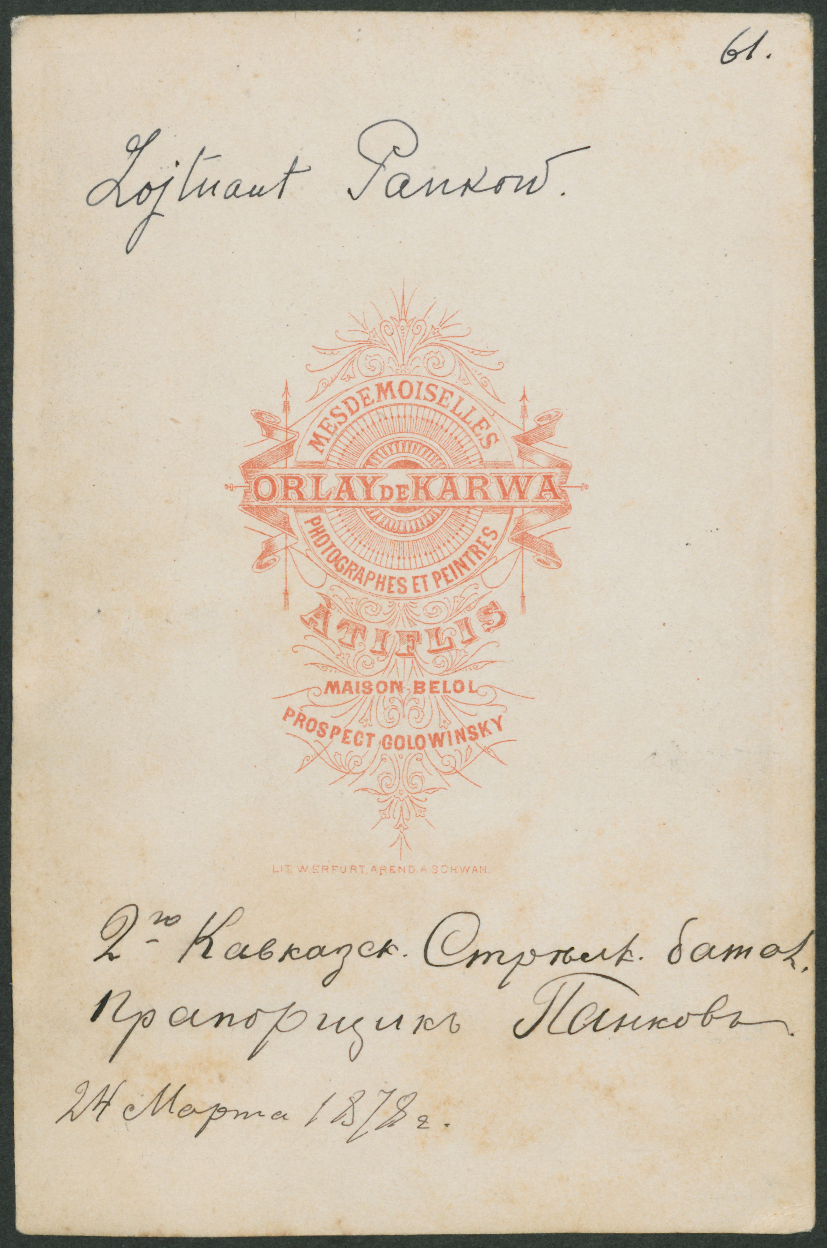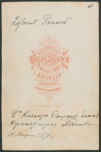 Fotografisk portræt, løjtnant Pankow, bagside