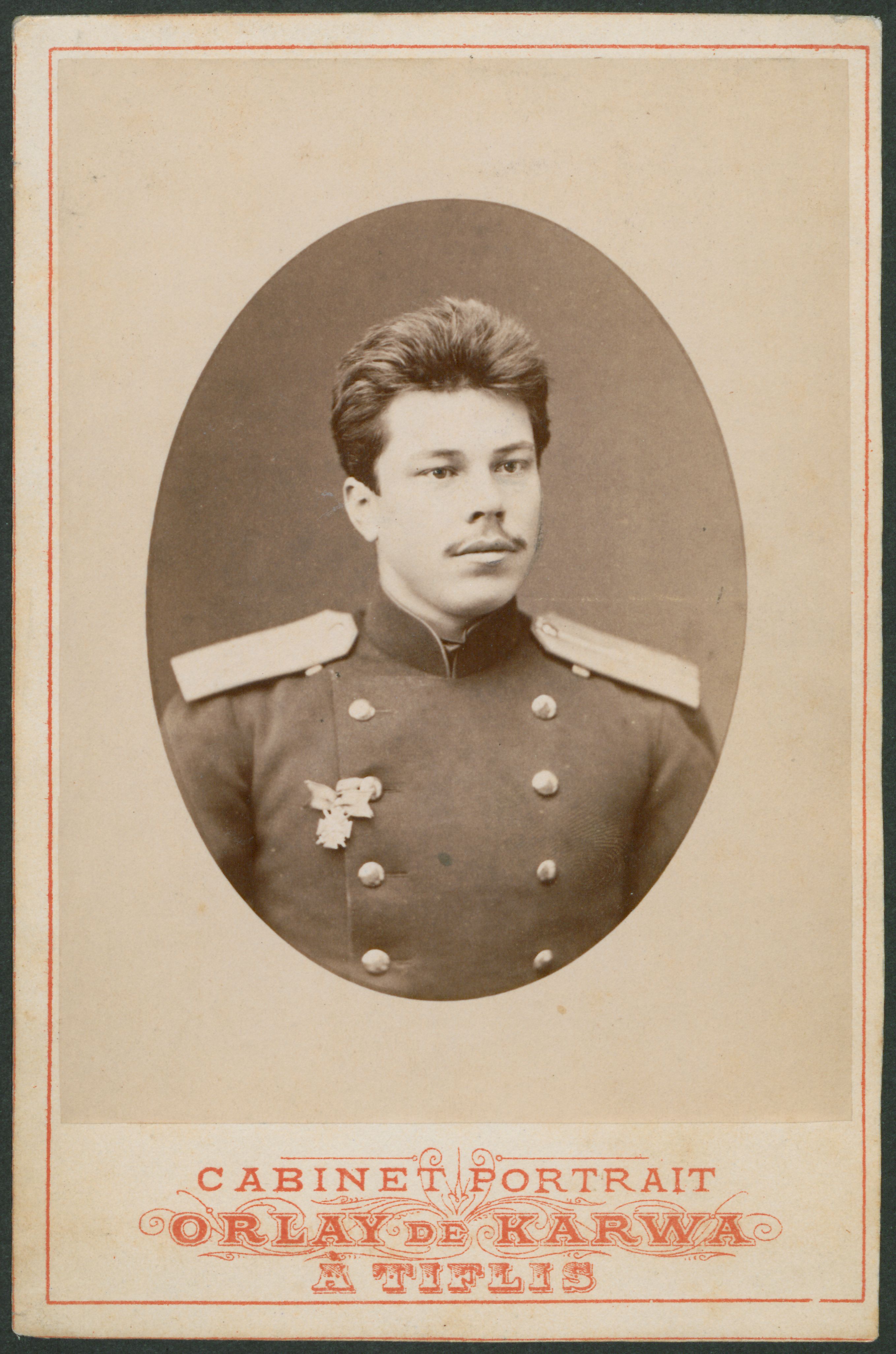 Fotografisk portræt, løjtnant Pankow iført daglig uniform med Stanislausorden med sløjfe og sværd på brystet.