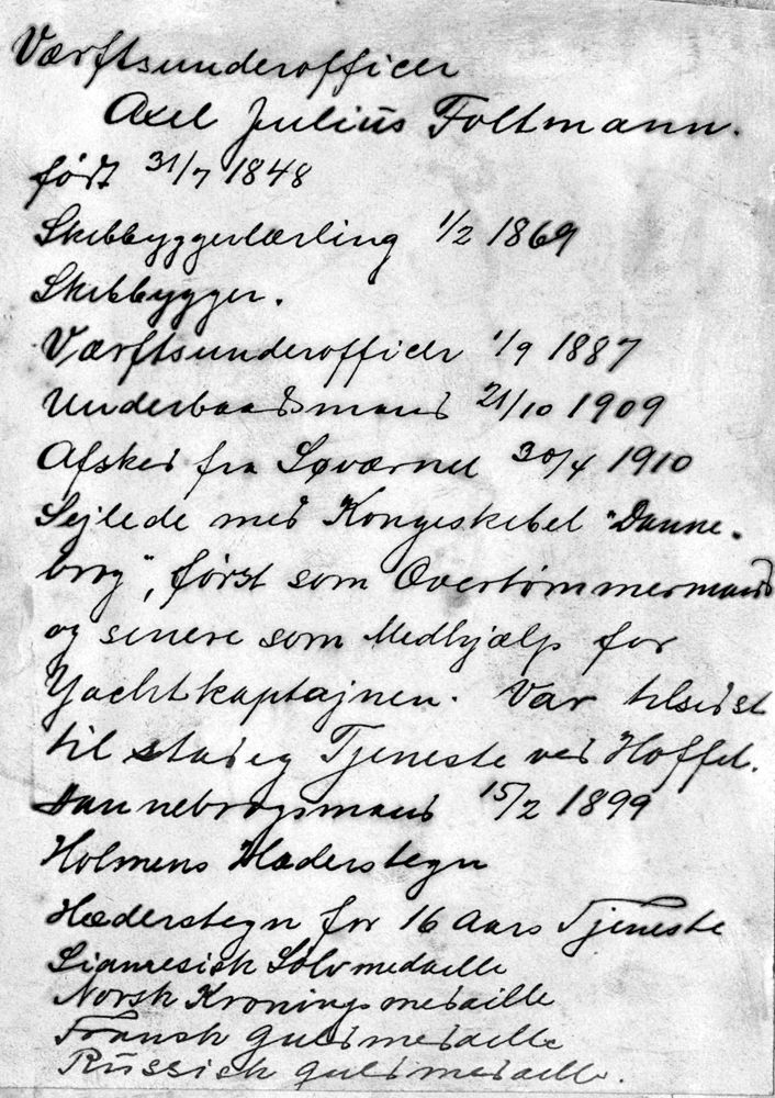 Foto: Værftsunderofficer Axel Julius Foltmann f. 31/7 1848. Data på bagside. Ramme som OM 1993:0603