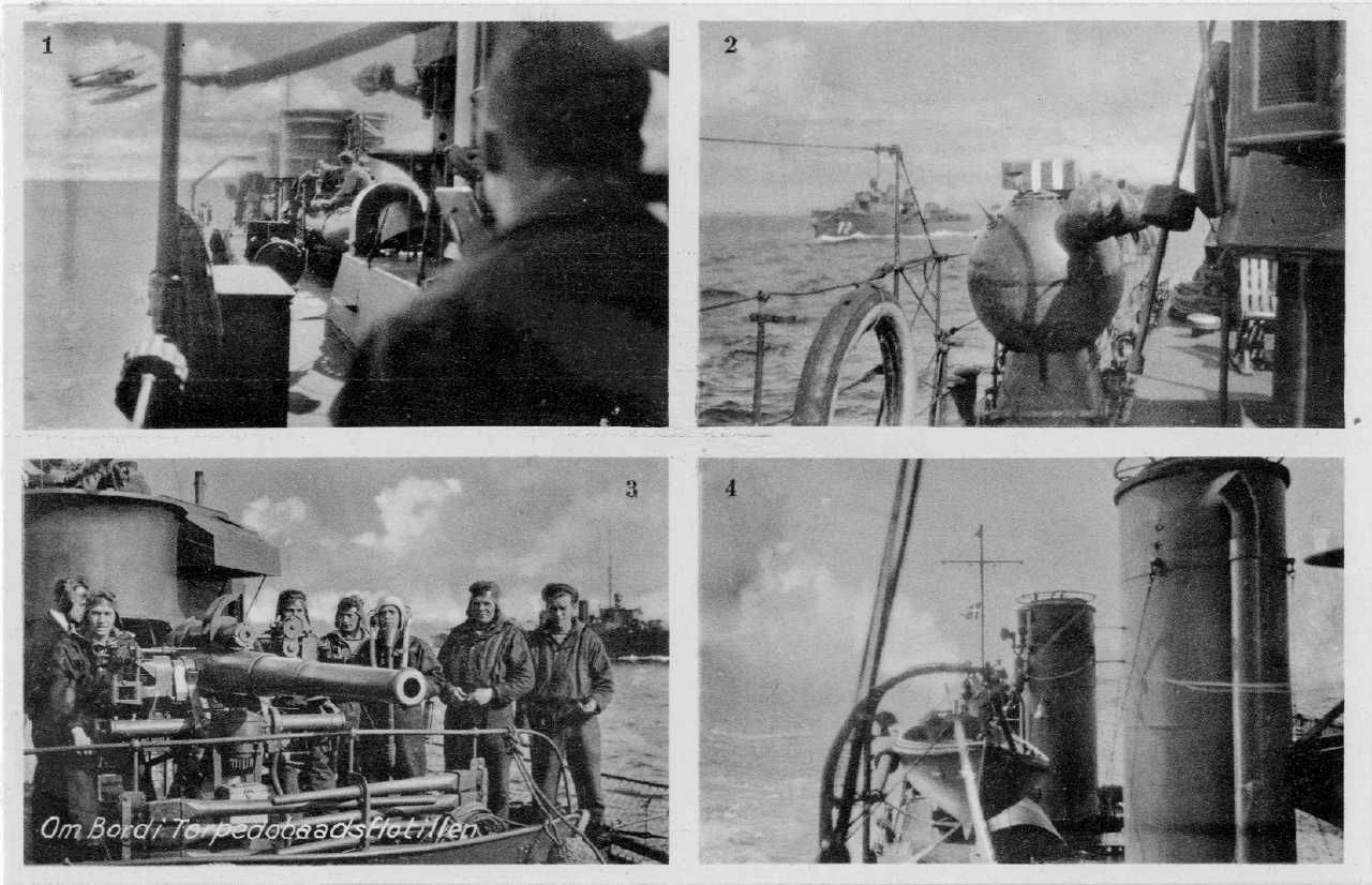 Postkort: 4 motiver med optagelser for torpedobåde Dragen-klassen (1930-1941)