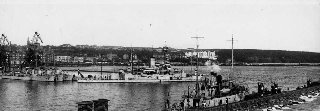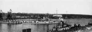 Foto: Orlogsskibe i Aarhus havn, Fot. Forår 1940. Sort smal ramme.