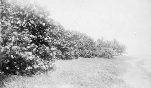 Foto: Strandparti ved Little Princes, St. Croix. Cocolaba´er og i baggrunden unge kokospalmer.