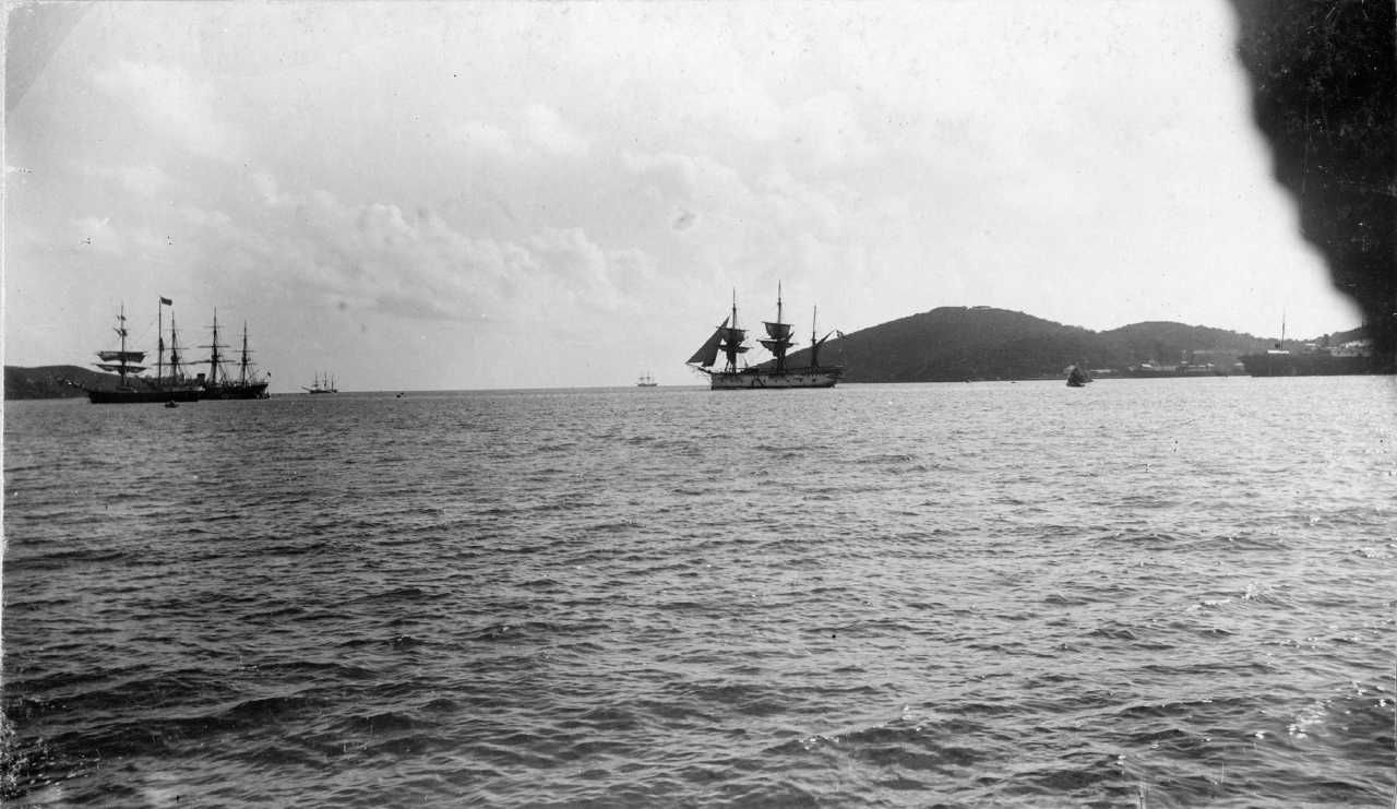 Foto: "Fyen", søsat 1882, på Charlotte Amalies rhed. Sejltørring.