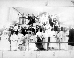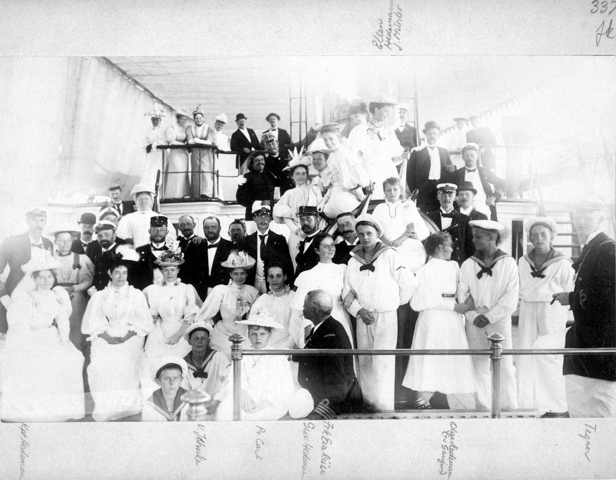 Foto: Gruppebillede, modtagelse om bord i "Fyen".