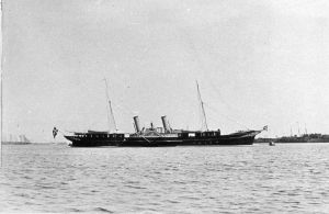 Foto: "Dannebrog" (bygget 1879) set mod styrbord. Fot. o. 1900.