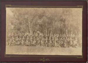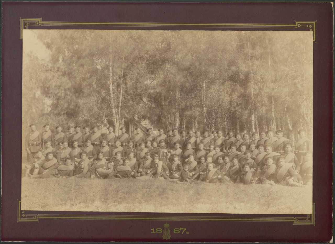 Fotografisk gruppebillede af kompagni ved Jegerskij-regimentet, 1887