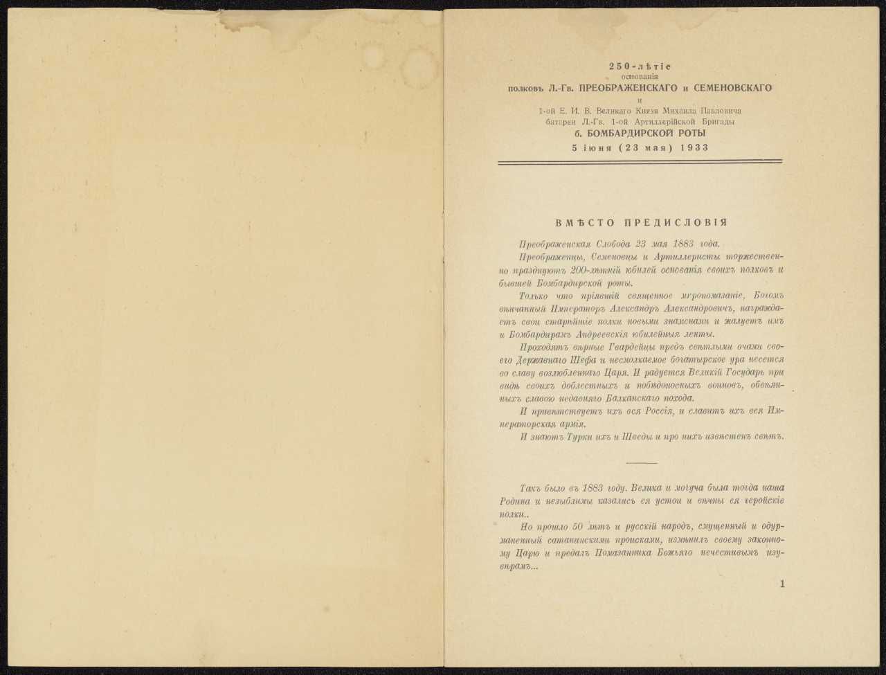 Bog om Preobratjenskij-regimentet преображенцы семеновцы бомбардиры 1683-1933. Udgivet i Paris, 1933Fra Gudim-Levklovitj' Samling.