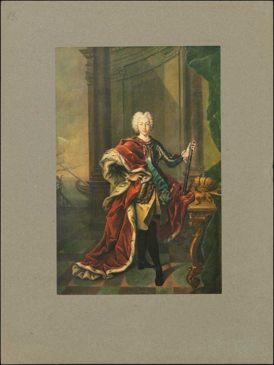 Farvetryk af oliemaleri af Kejser Peter 2. (1715-1730). Fra serie med billeder af russiske kejsere og kejserinder. Fra Gudim-Levkovitj' Samling