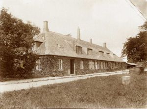 Foto: Søartilleriets bygning på Dokøen. Fot. 1925. Set mod sydlige gavl og østre facade.