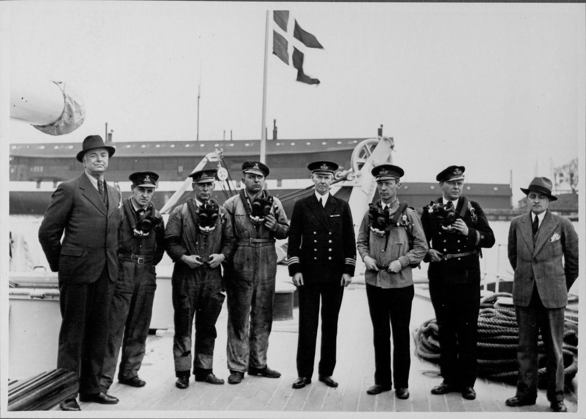 Foto: Fotoalbum indeholdende 18 stk. fotos til erindring om Marinens Røgdykkerkursus, april 1935.