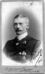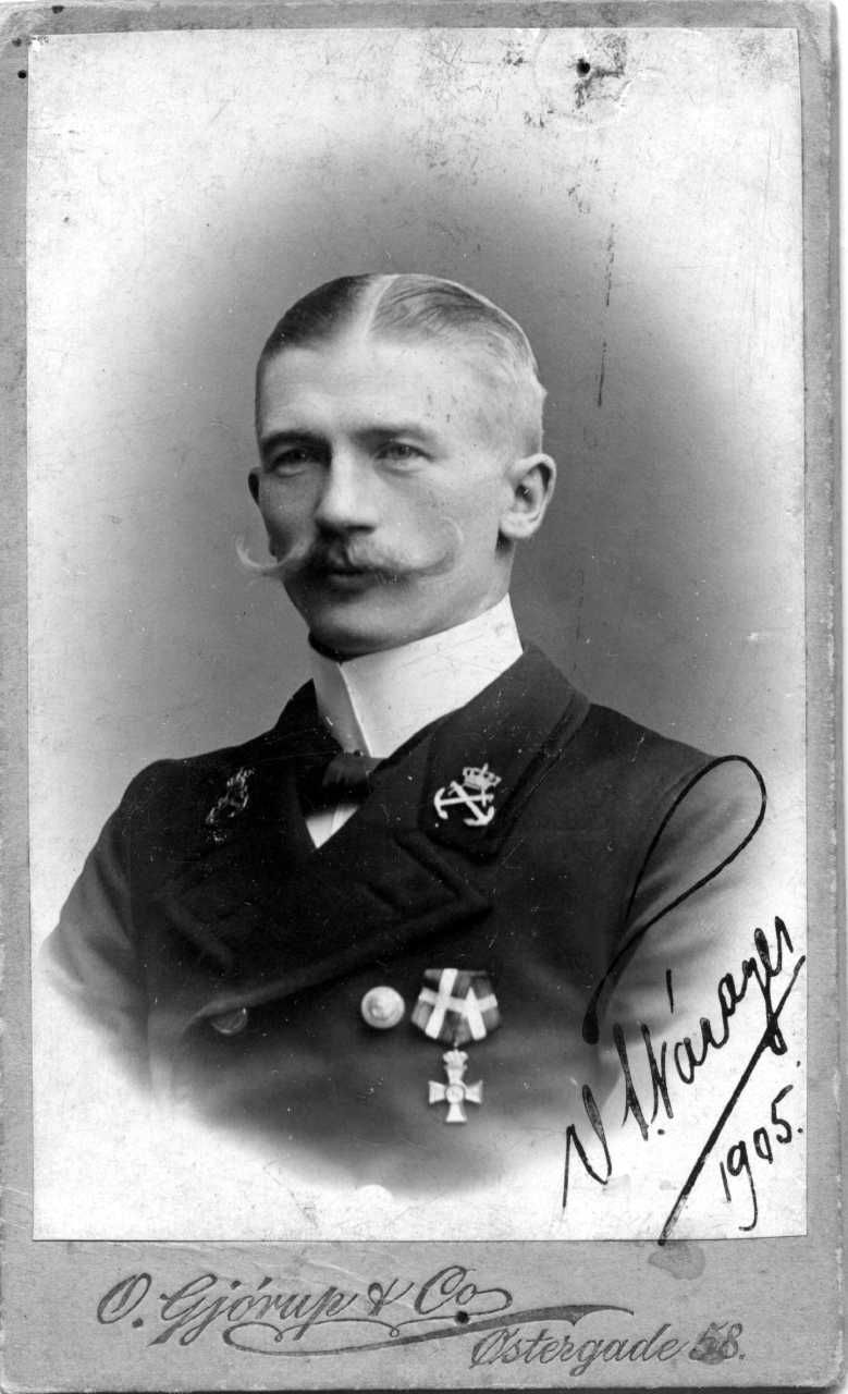 Foto: V. Nørager, underbådsmand, senere løjtnant og inspektør i Nyboder. Brystbillede, visitkortformat.