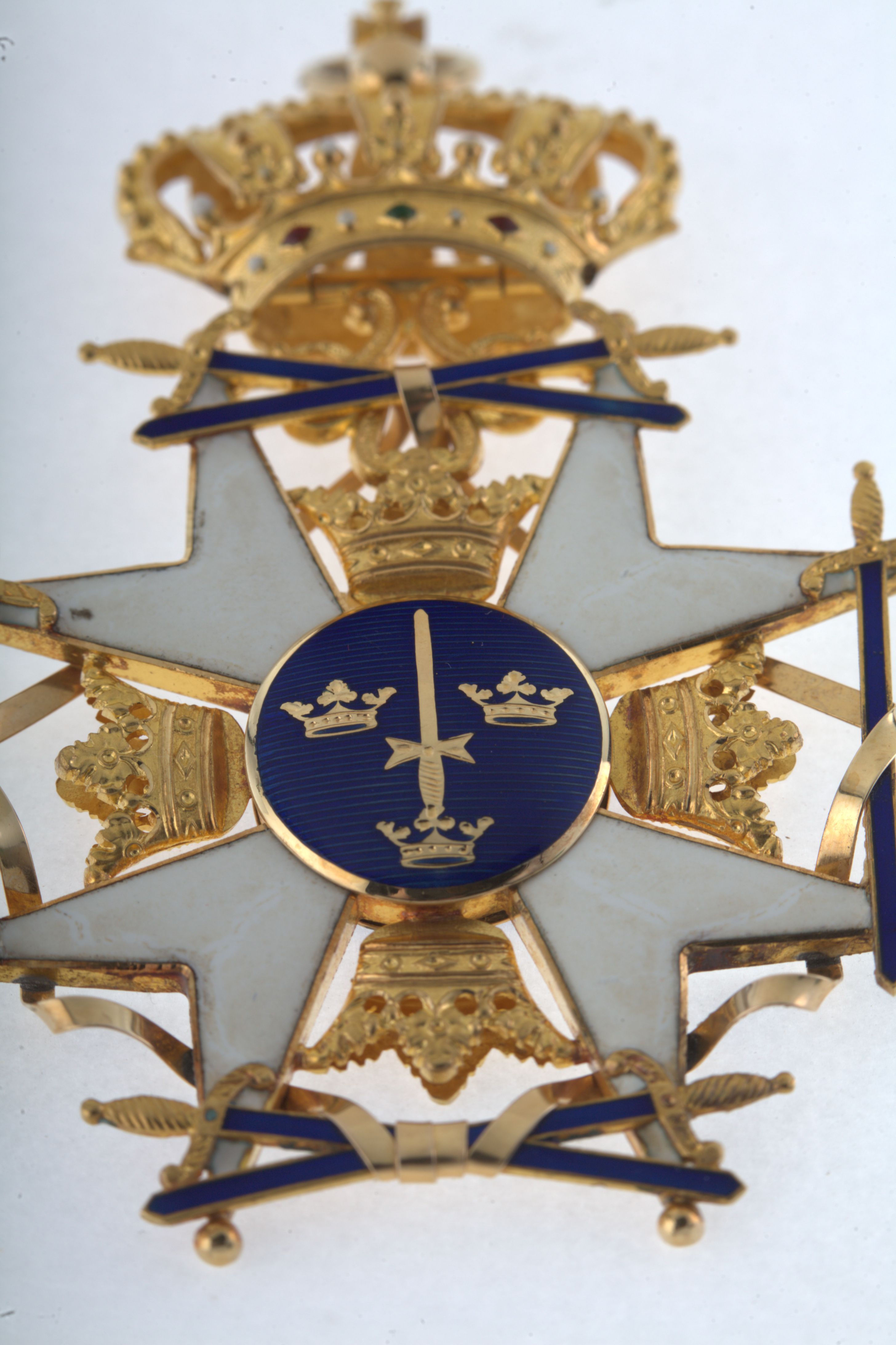 Halskors for kommandører af den svenske Sværdorden, Selve ordenen er stiftet i 1778, hvor denne er uddelt til Generalmajor K. H. Lasson. Han fik tildelt ordenen ved Christian den tiendes regeringsjubilæum i 1937. Generalmajoren fik ordenen overrakt af Kong Gustav personligt. Ordenen er givet til museet af et barnebarn af generalmajoren. Tøjhusmuseet, medalje.