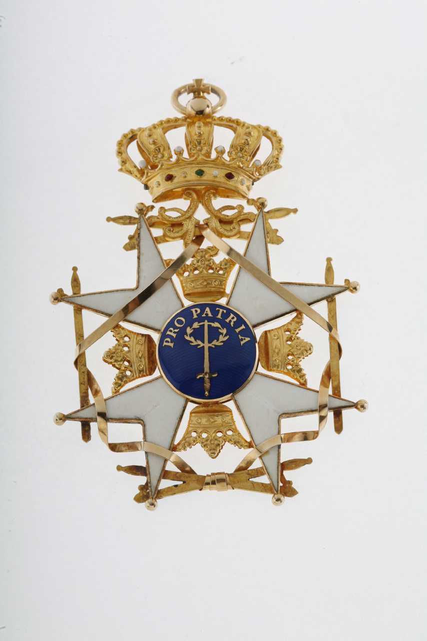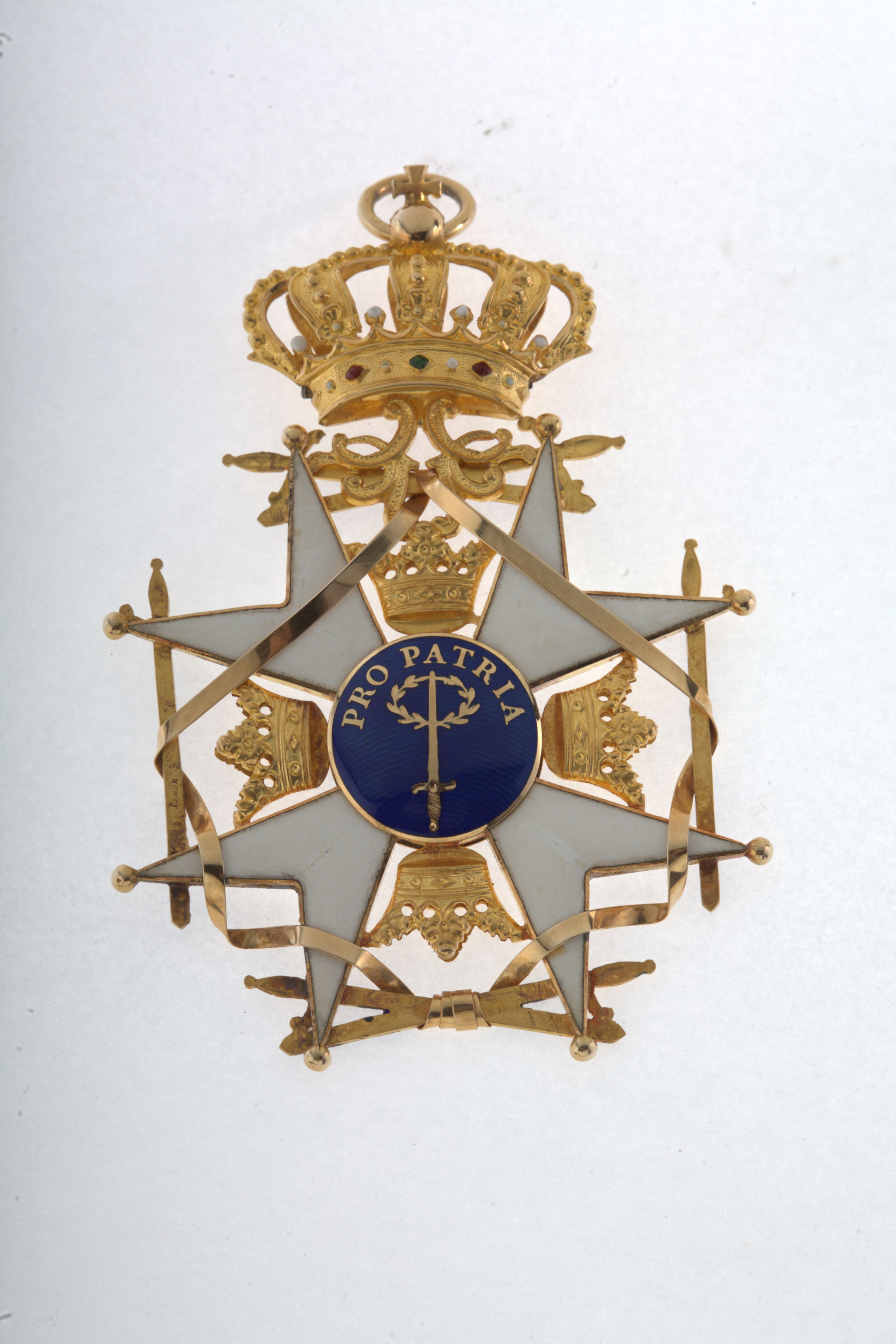 Halskors for kommandører af den svenske Sværdorden, Selve ordenen er stiftet i 1778, hvor denne er uddelt til Generalmajor K. H. Lasson. Han fik tildelt ordenen ved Christian den tiendes regeringsjubilæum i 1937. Generalmajoren fik ordenen overrakt af Kong Gustav personligt. Ordenen er givet til museet af et barnebarn af generalmajoren. Tøjhusmuseet, medalje.