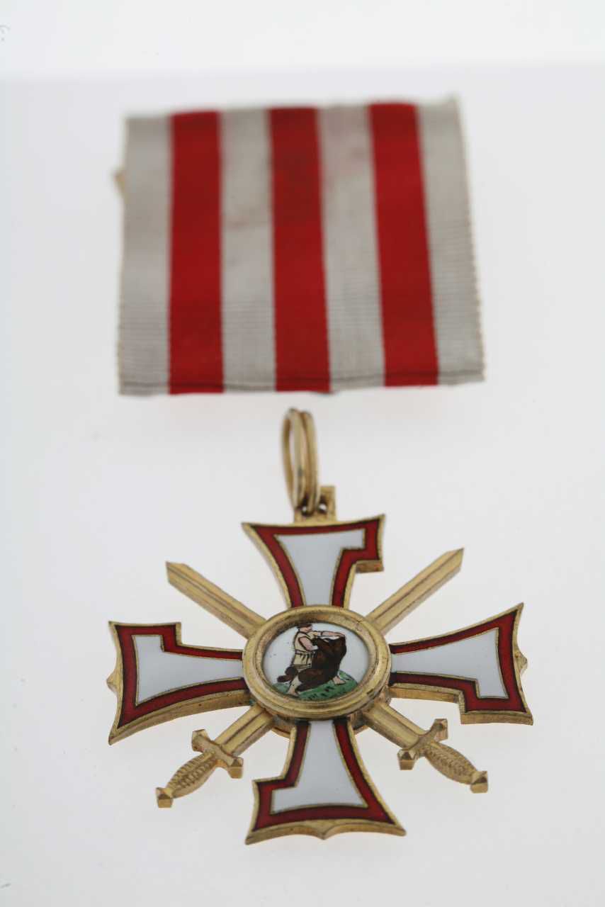 Letlands militære Lacplesis orden (Bjørnedræber ordenen) af tredje klasse, der er stiftet d. 11 nov. 1919 og godkendt d. 18 nov. 1920. Båndet til ordenen er hvidt med tre røde striber.Tøjhusmuseet, medalje.