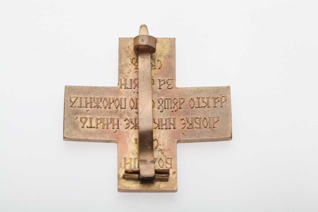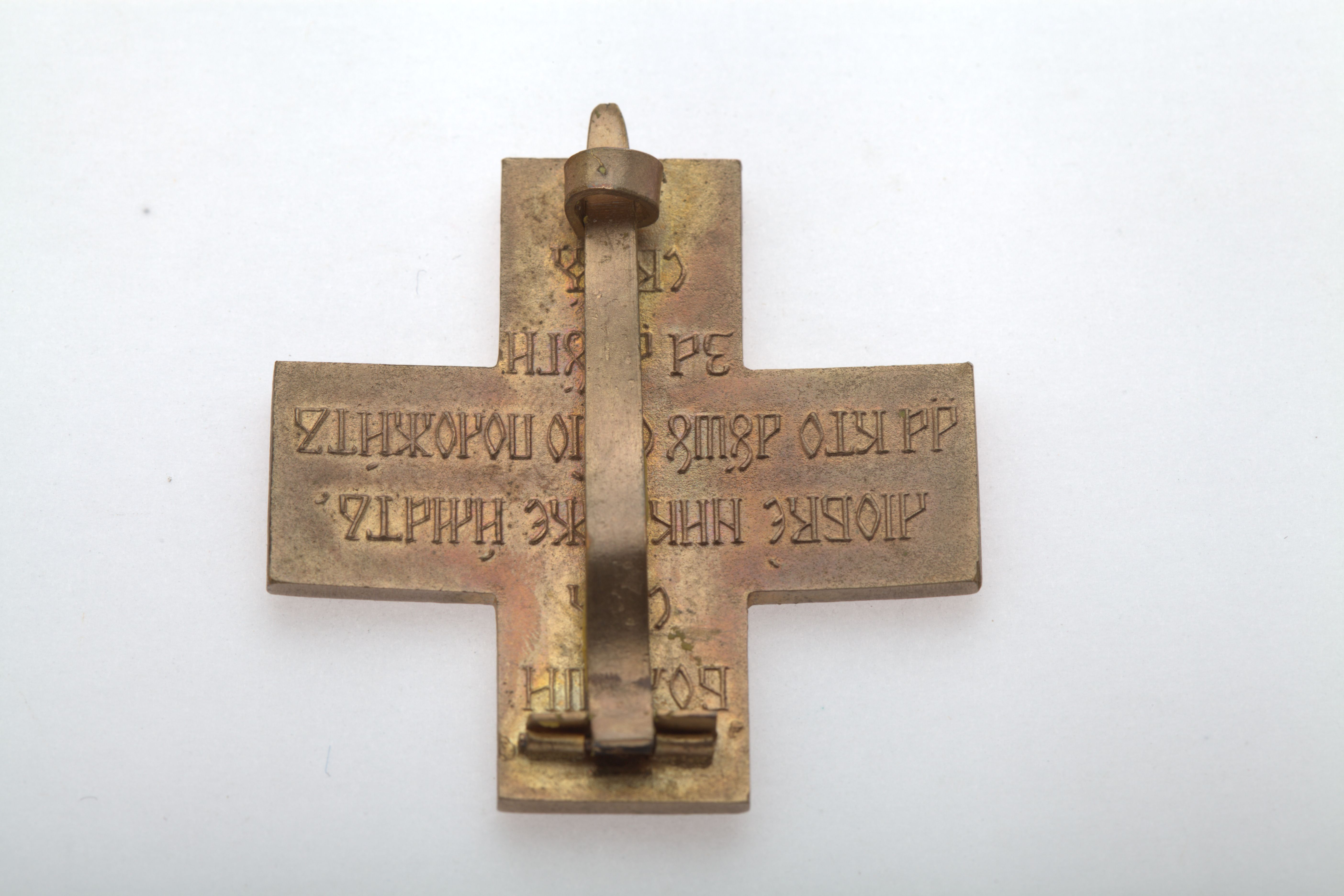 Den højeste russiske Røde kors udmærkelse uden bånd, der har tilhørt Generalmajor S. Pototskij (Amager Boulevard 120. København S).Tøjhusmuseet, medalje.