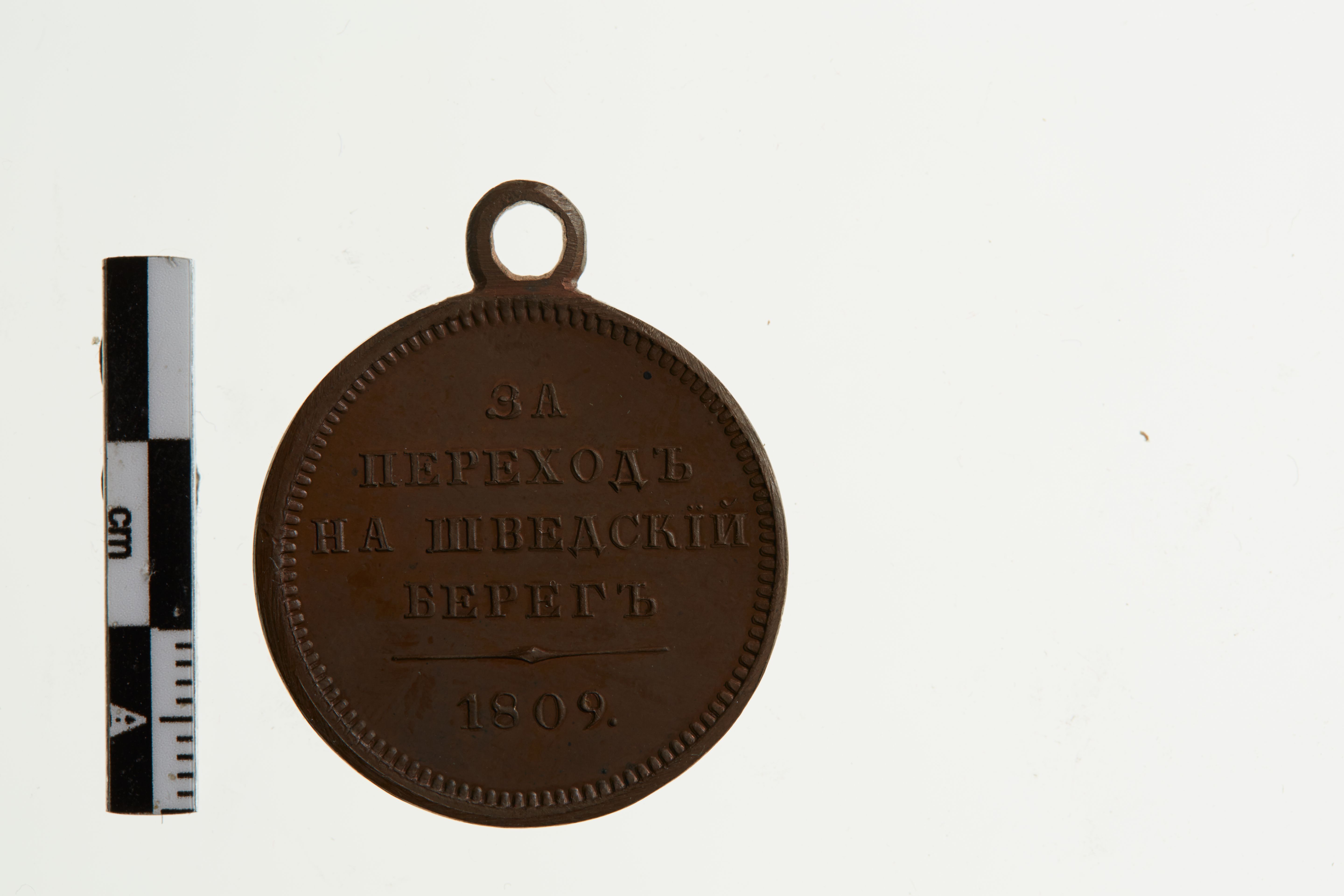 Medalje stiftet d. 14/4 1809 og givet for felttoget mod Sverige i 1809. Til minde om de russiske troppers heltegerninger under Generalløjtnant Barclay de Tolly, Generaladjudant Greve Suvorov og Avantgarden af Prins Bragarians korps under Generalmajor Kulnief som trængte ind i Sverige. Barclay de Tolly over den Botniske Bugt mens Kulnief sjelede over Ålandshavet. Til Barclay de Tolly og Kulniefs tropper uddeles denne sølvmedalje i Andreas ordenens bånd, mens Suvorov's tropper fik en anden medalje. På forsiden af medaljen ses følgende påskrift "Alexander I", mens der på bagsiden ses denne påskrift "For overgang til Sveriges kyst i 1809".