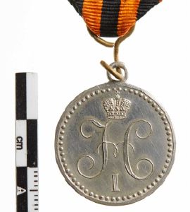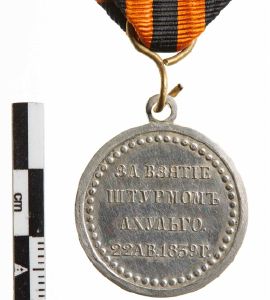 Medalje stiftet af Nikolaj I og givet for deltagelsen i stormen på fæstningen Alnilgo d. 22/8 1839. På forsiden af medaljen ses Nikolaj 1.s monogram, mens der på bagsiden ses følgende påskrift "For delagelsen i stormen på Alnilgo 22/8 1839". Båndet til medaljen er gult med tre sorte striber.