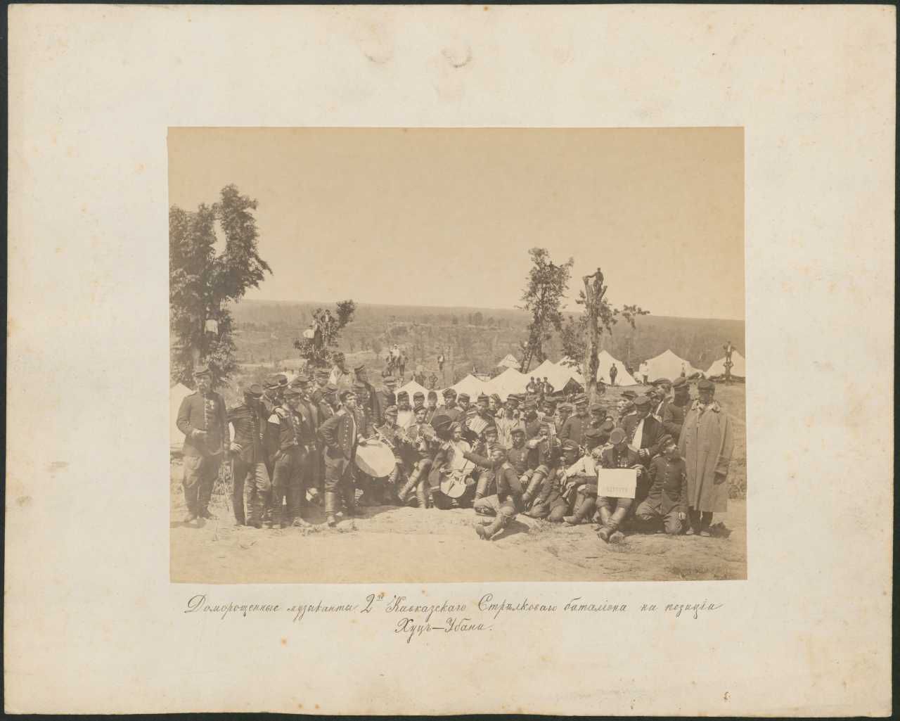 Tekst under billedet: "Доморощенные музыканты 2ого Кавказского Стрелкового батальона на позиции Хуц-Убани."