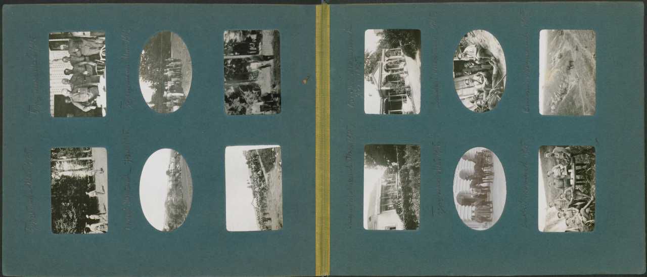 Fotoalbum med dagligdags situationer fra den russiske hær optaget vinter og forår 1915 - muligvis i Østpreussen. Kommentarer skrevet med blyant på blåt pap er meget svært læseligt.