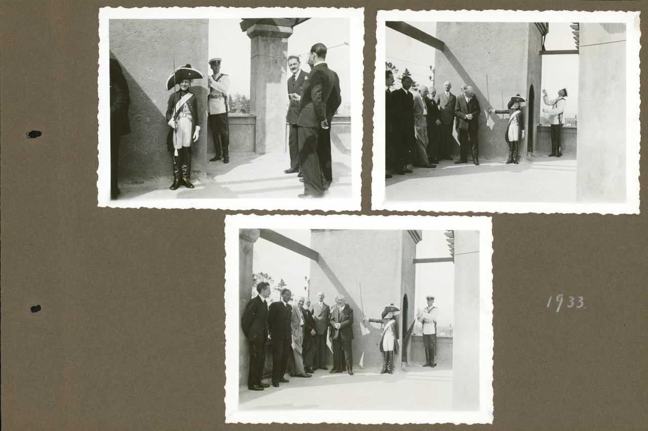 Fotoalbum fra La Maïon Longa, 1930-38. På billederne ses bl.a. Paul Gudim-Levkovitj og hans søster Ludmilla Offenberg og andre medlemmer af det russiske eksilsamfund i Frankrig. På en del af billederne bærer nogle af personerne uniformer og uniformshovedbeklædninger fra forskellige gamle russiske regimenter.