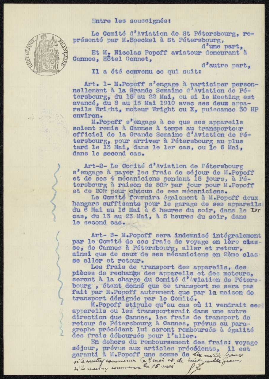 Samling af fotografier, tegninger, dokumenter og breve efterladt af flypioneren Nikolaj Jevgrafovitj Popov - Николай Евграфович Попов (1878-1929). Fra Gudim-Levkovitj' Samling.