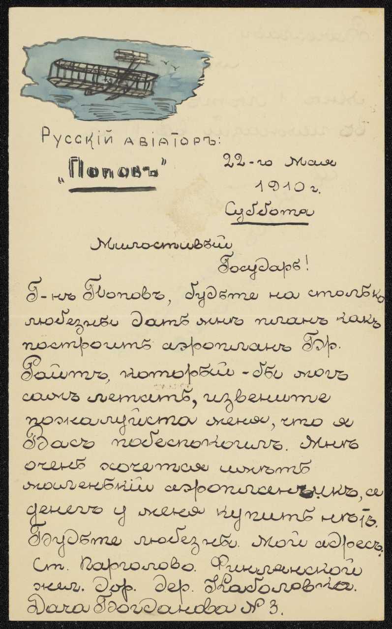 Samling af fotografier, tegninger, dokumenter og breve efterladt af flypioneren Nikolaj Jevgrafovitj Popov - Николай Евграфович Попов (1878-1929). Fra Gudim-Levkovitj' Samling.