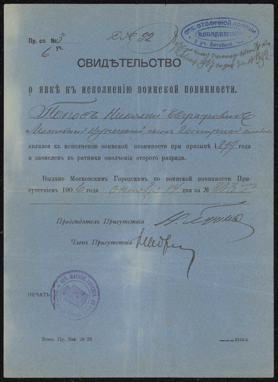 Samling af fotografier, tegninger, dokumenter og breve efterladt af flypioneren Nikolaj Jevgrafovitj Popov - Николай Евграфович Попов (1878-1929). Fra Gudim-Levkovitj' Samling.