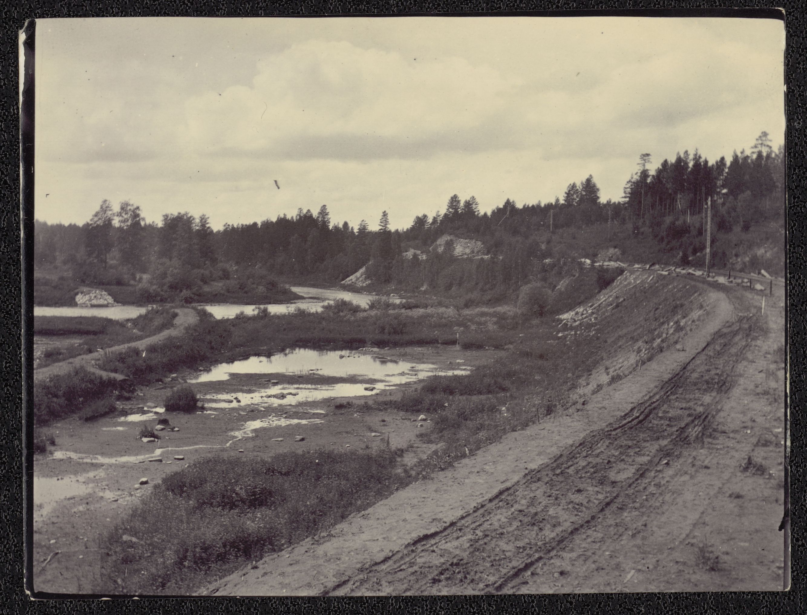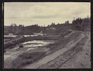 Foto af skovlandskab med søer langs jernbanen på vej til Manchuriet.