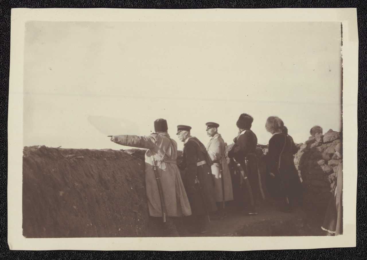 Højtstående officerer betragter udsigten fra skyttegraven.