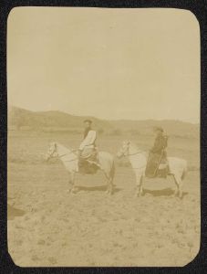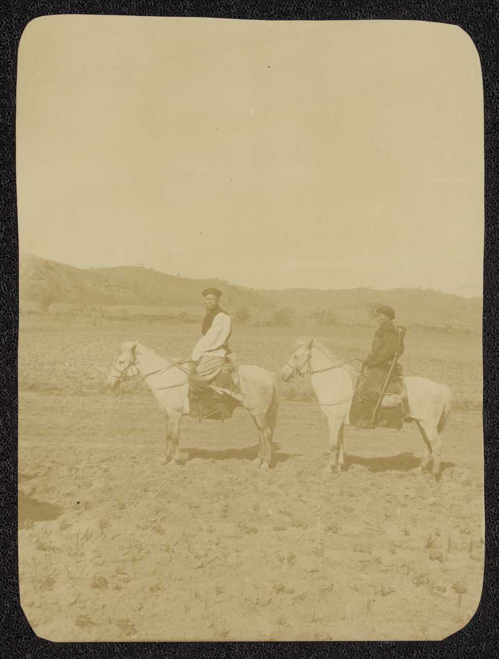 På dette fotografi ses en kinesisk officer og soldat, begge på hesteryg.