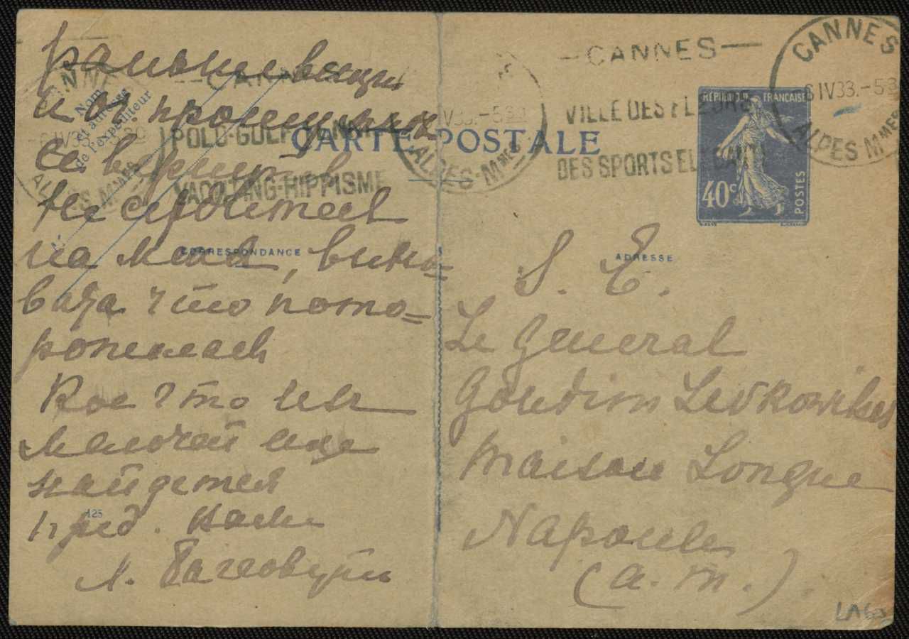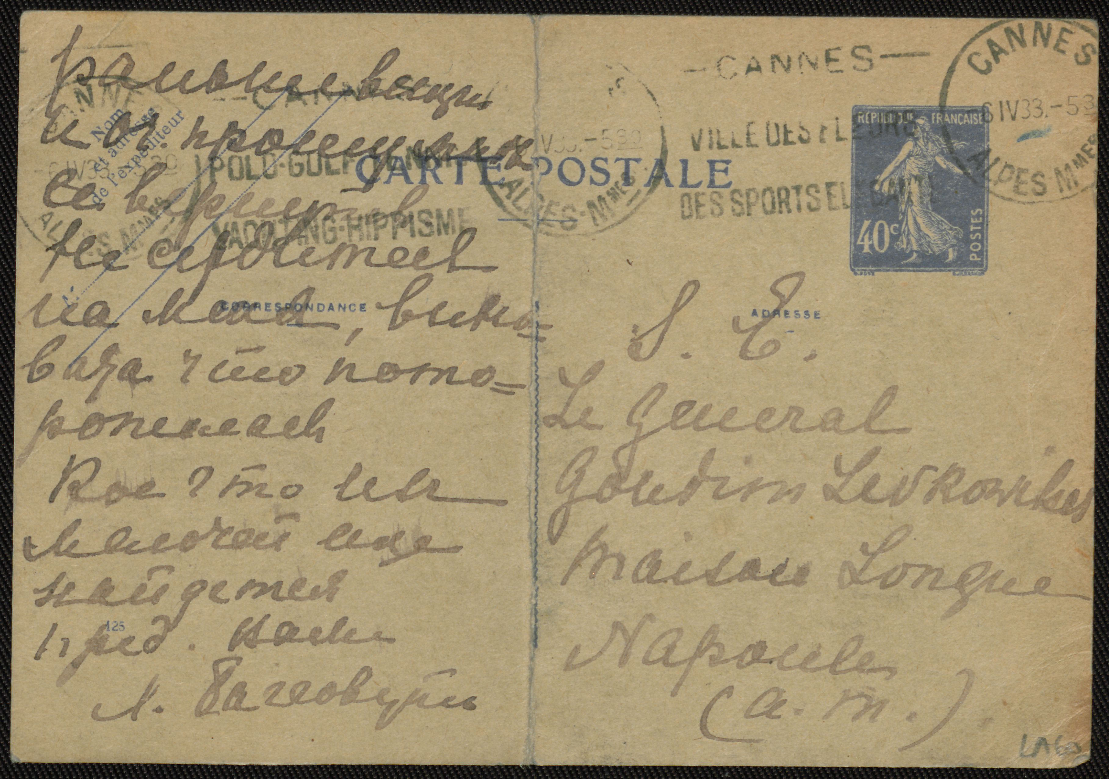 Postkort fra A. Bilderling til Gudim-Levkovitj, 1933