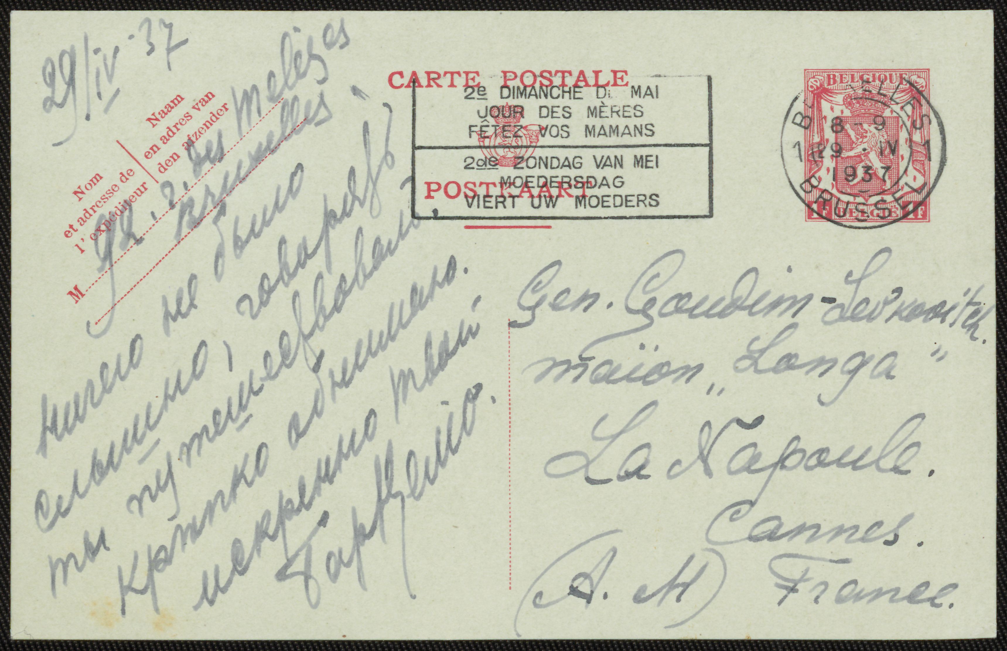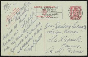 Postkort til Gudim-Levkovitj fra baron V.I. Velio, 1937