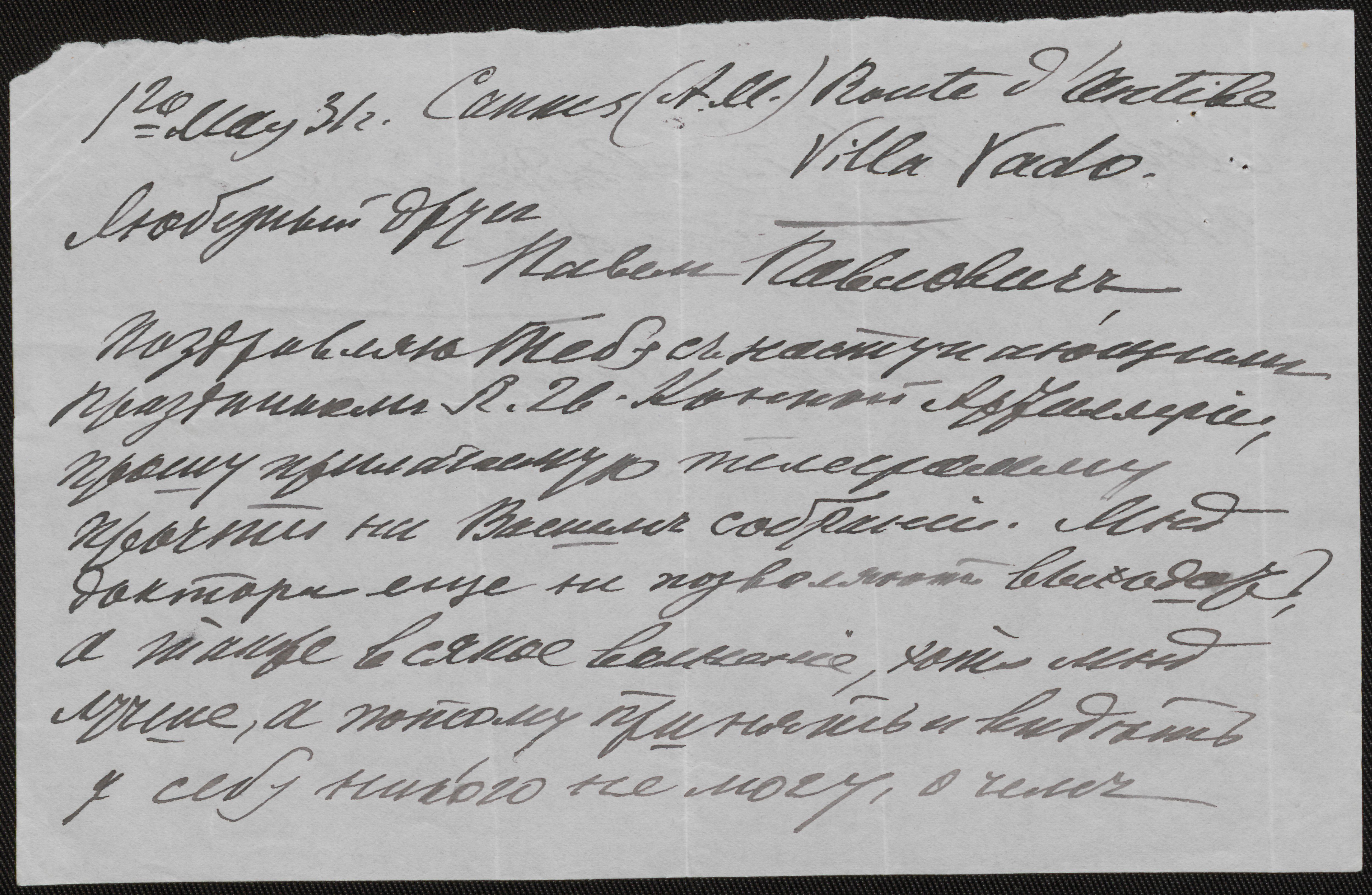 Brev fra I.K. Baggovut (Ива́н Ка́рлович Баггову́т), 1862-1933 til Gudim-Levkovitj, 1931.