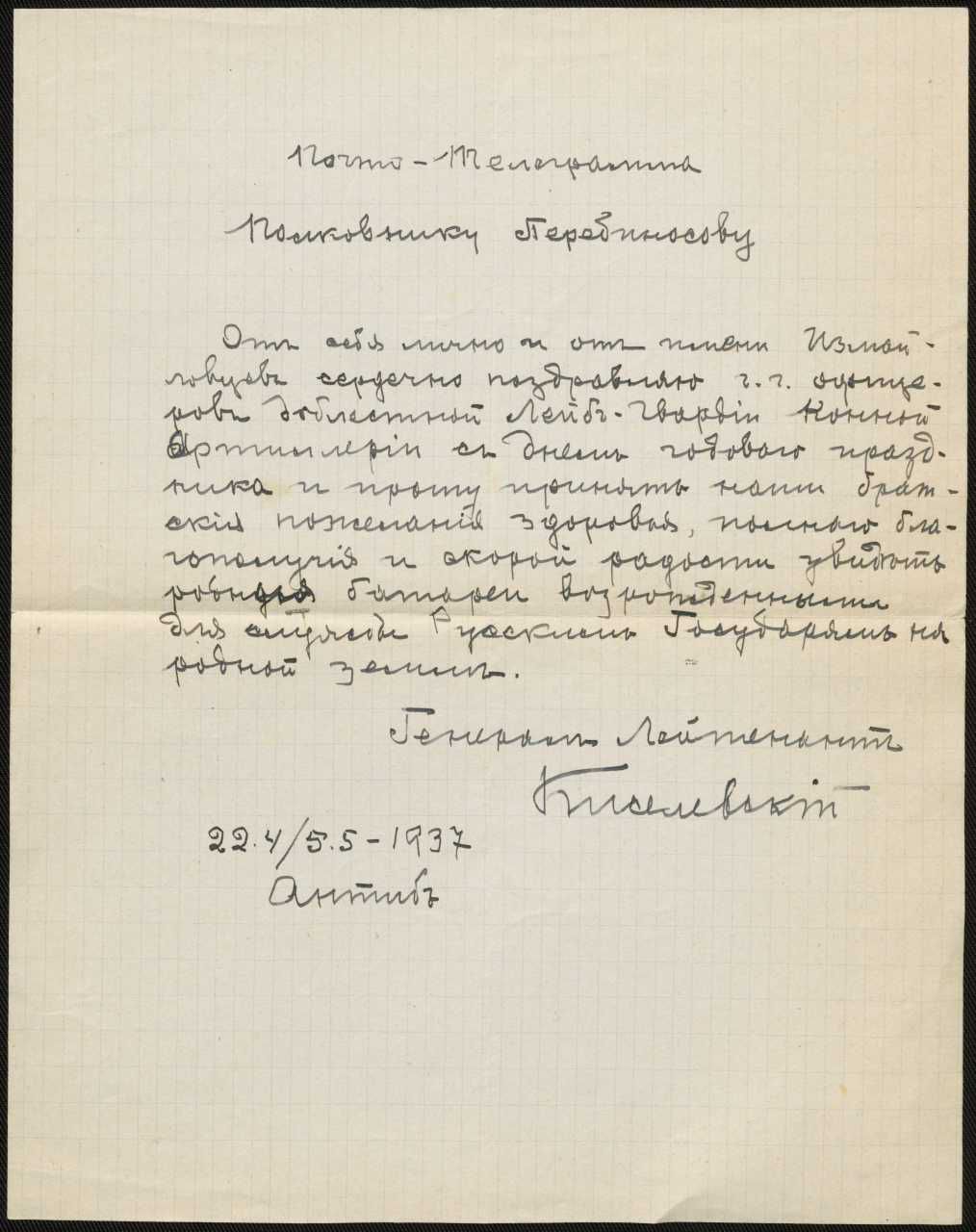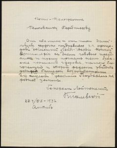 Brev til Gudim-Levkovitj fra Kirill Kiselevskij, 1936