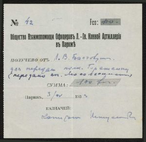Breve og postkort fra I. K. Baggovuts enke Ljubov til Gudim-Levkovitj, 1933 (Ива́н Ка́рлович Баггову́т), 1862-1933. Fra Gudim-Levkovitj' Samling.