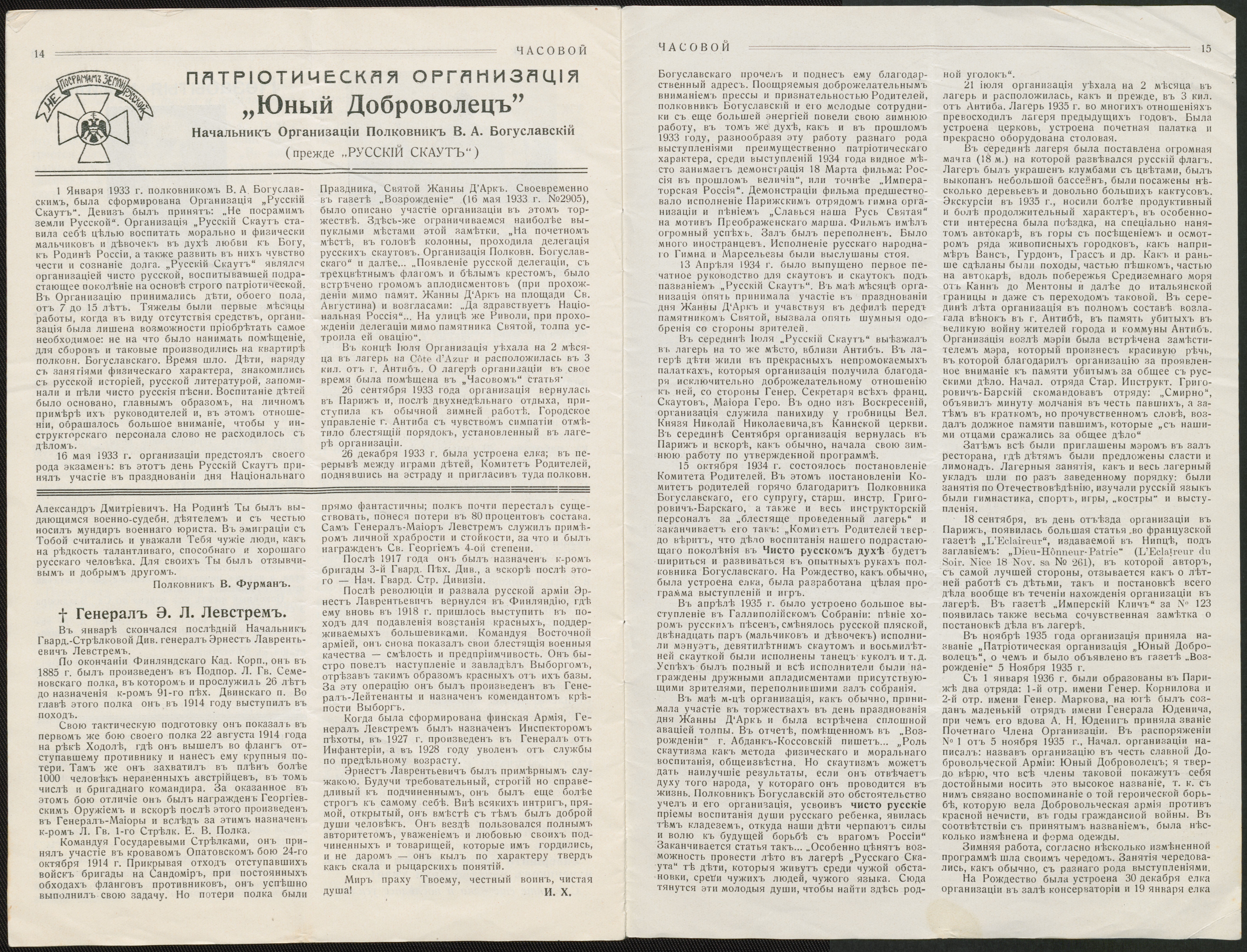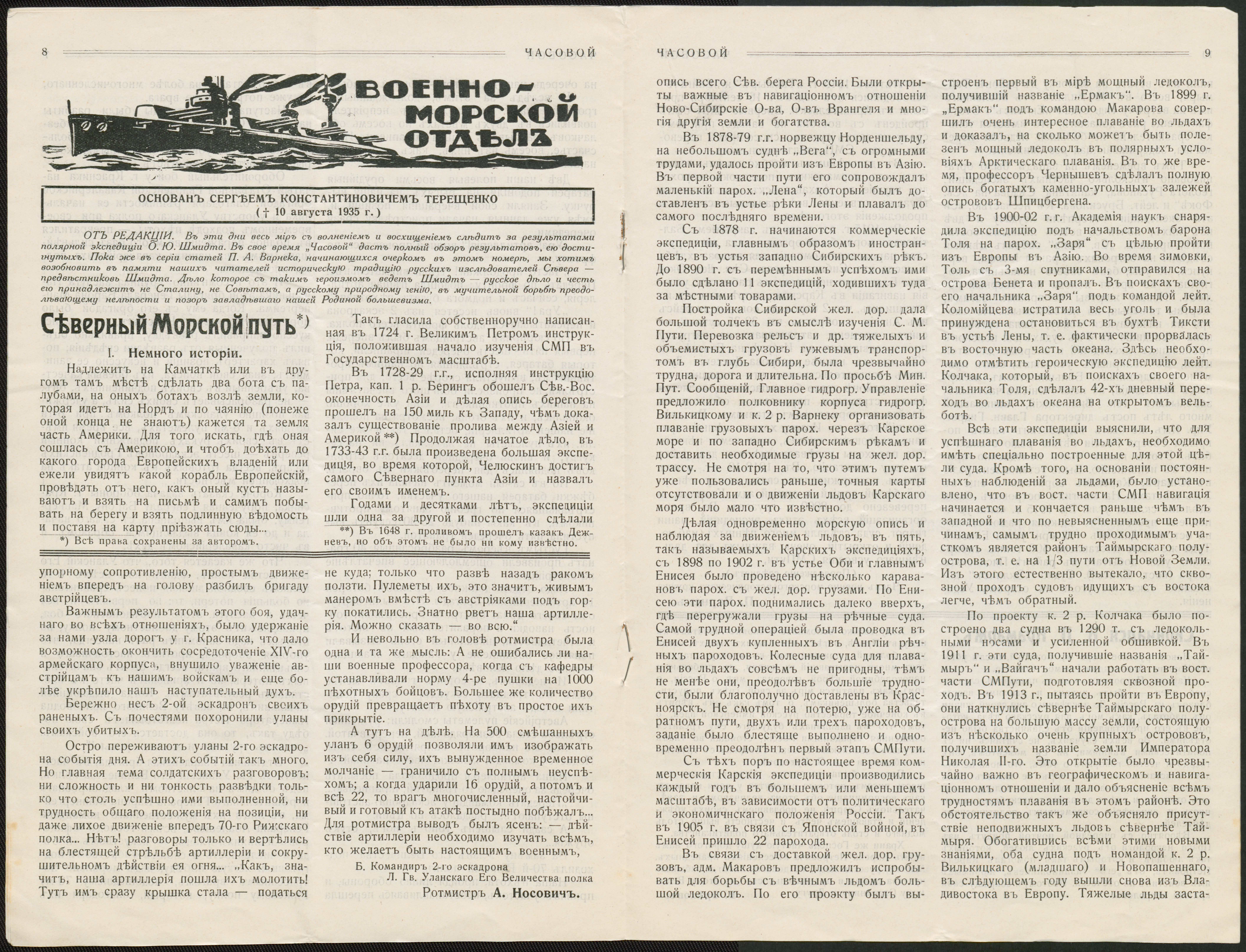 Breve og en artikel fra A.L. Nosovitj, 1931-37 (Анатолий Леонидович Носович) 1878 — 1968. Oberst fra 1916 i Livgarde-Ulan Regimentet. Underviser i Pagekorpset og emigrerede til Nice. Har skrevet sine memoirer (på russisk). Indeholder breve til Levkovitj og nr. 191 af bladet ’La Sentinelle’ med blandt andet en artikel af Nosovitj.