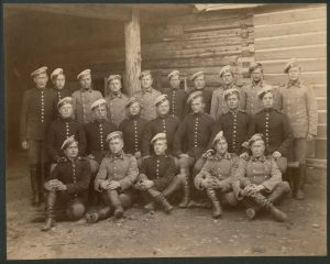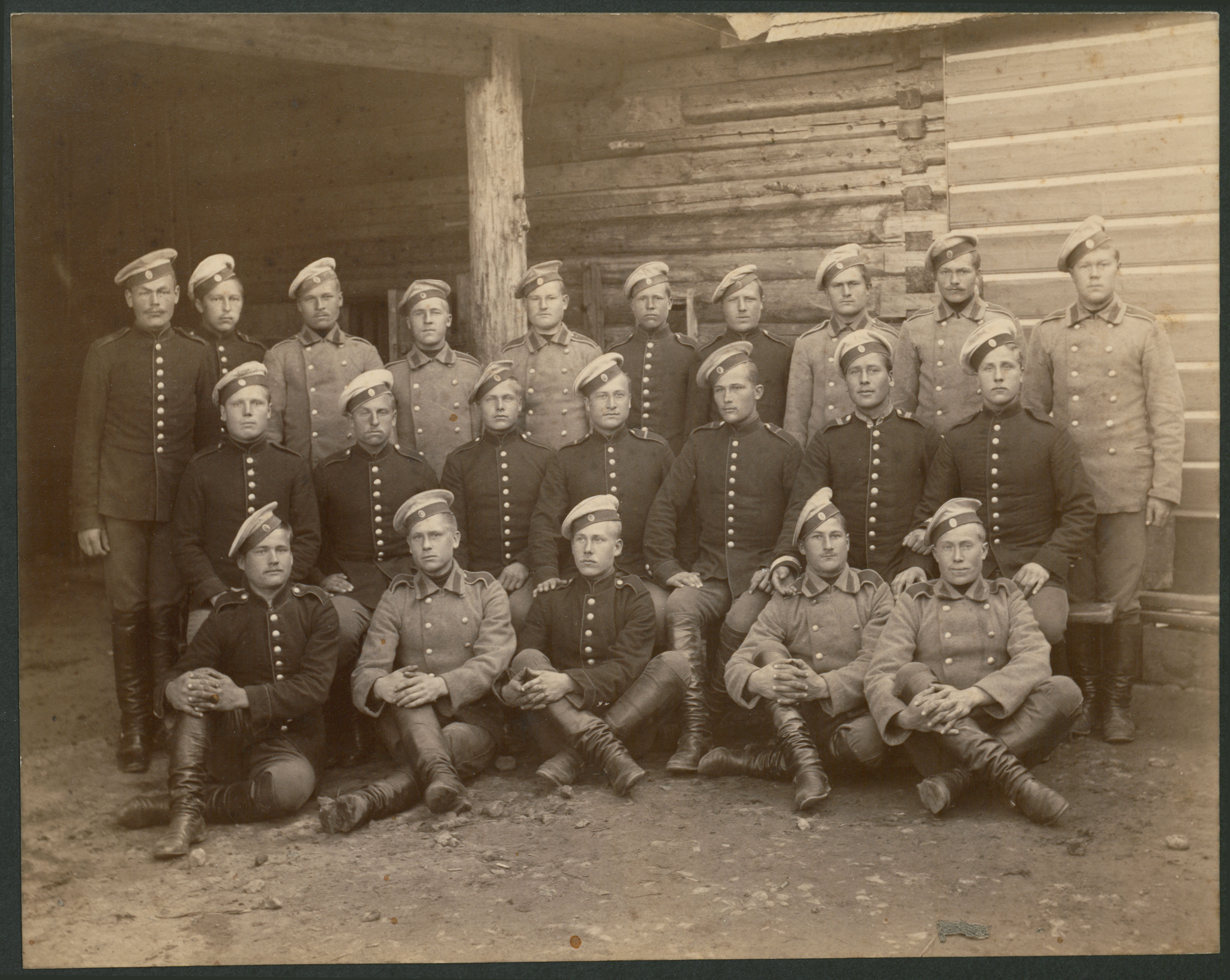Gruppefotografi af 22 soldater fra Gardekyrasserregimentet (Кирасирский Его Величества лейб-гвардии полк). Udateret. Fra Gudim-Levkovitj' Samling.