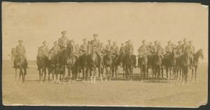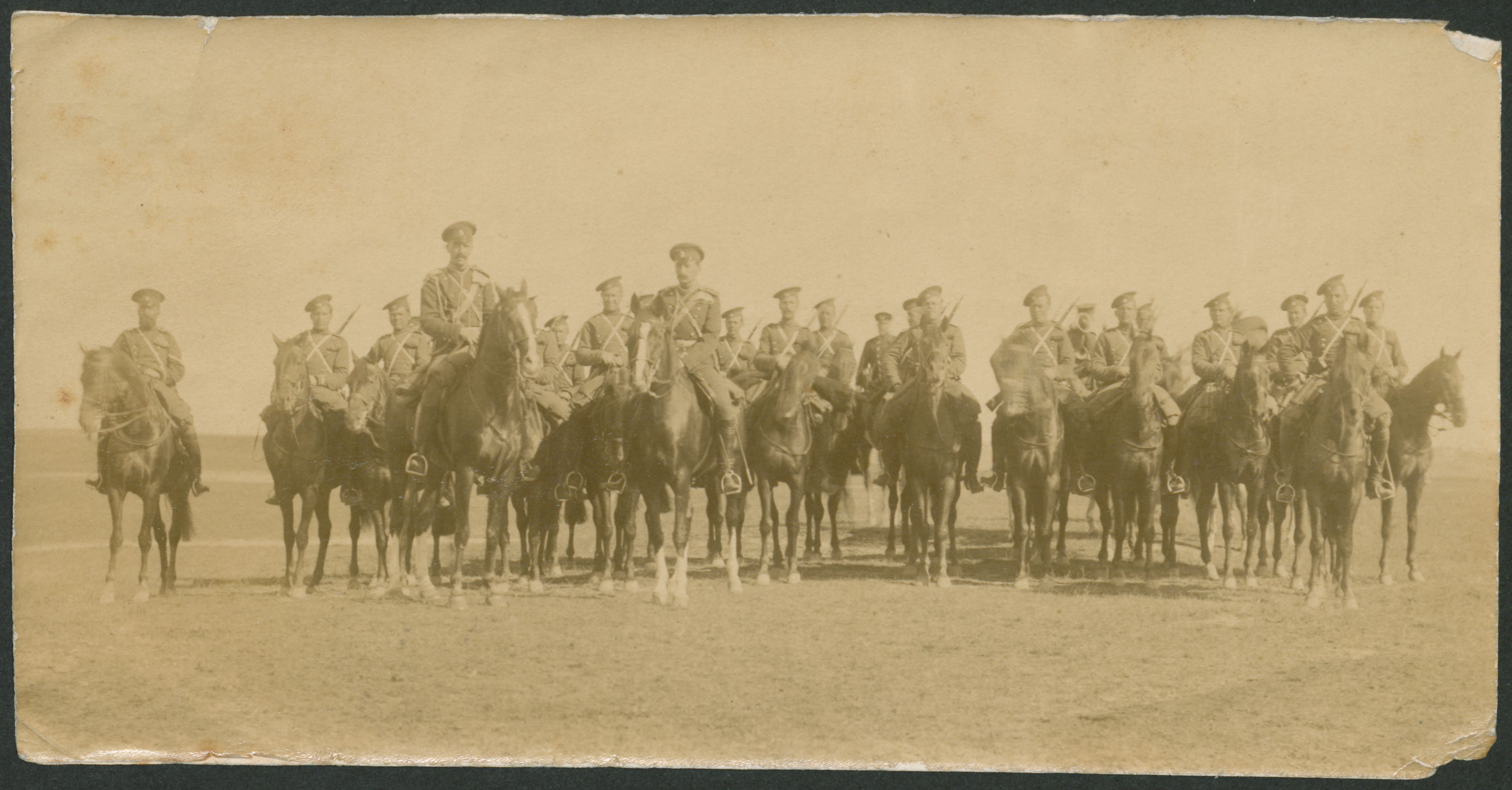 Fotografi af (mindst) 22 beredne soldater og officerer fra et ikke identificeret regiment. Fra Gudim-Levkovitj' Samling