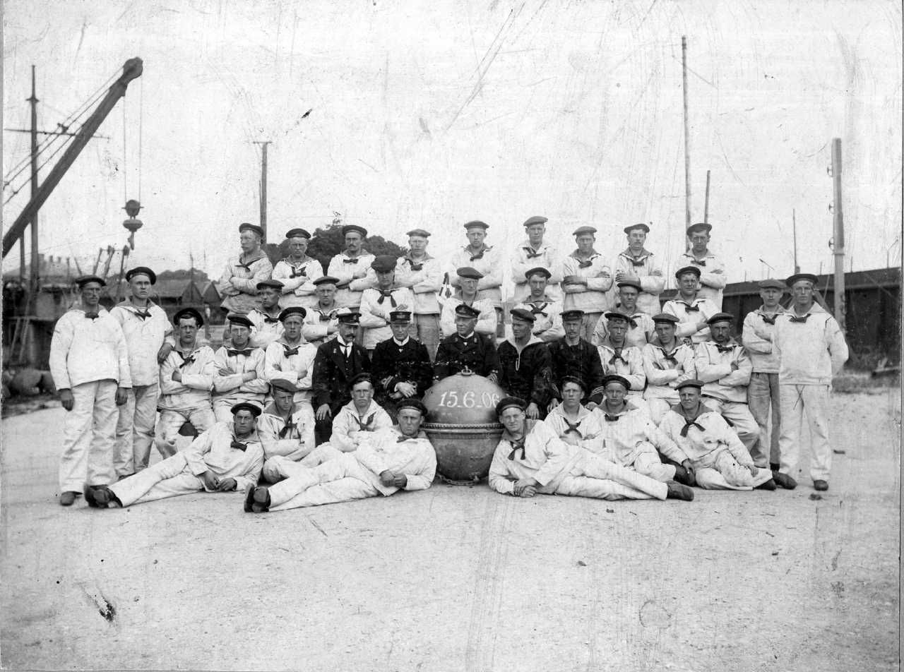 Foto: Gruppebillede. Befalingsmænd og værnepligtige omkring sømine, dat. 15-6-06.