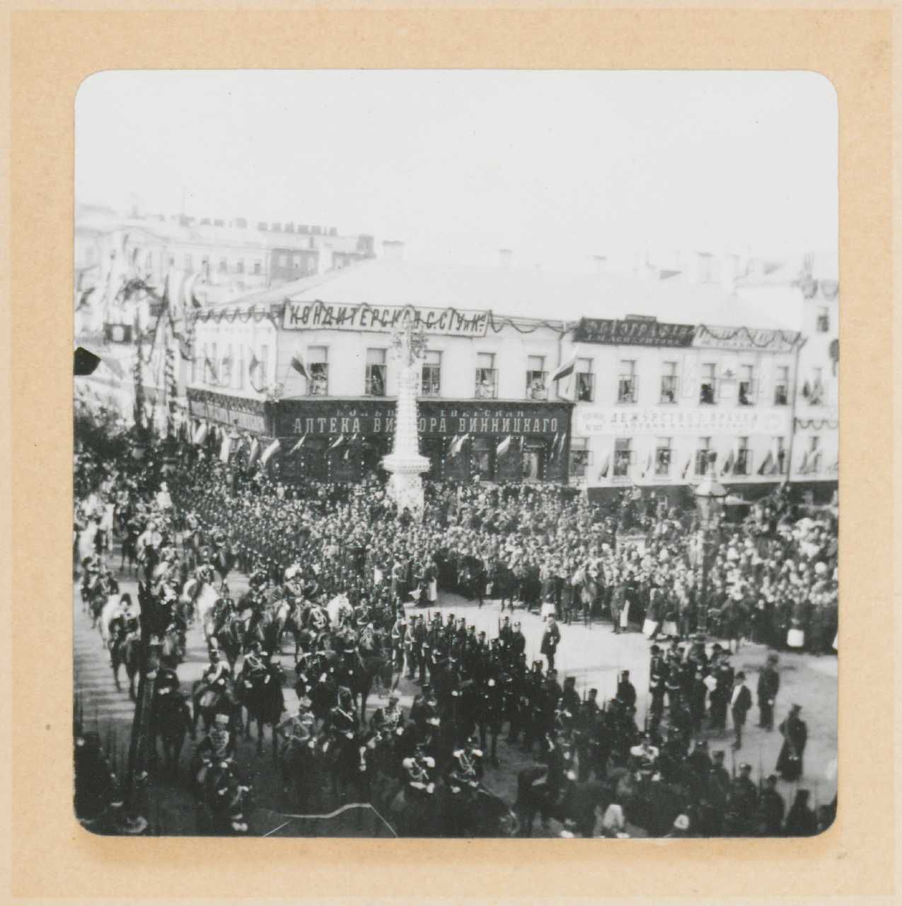 Album med fotografier primært fra kroningsfestlighederne i maj 1896, da kejser Nikolaj 2. af Rusland blev kronet. Der er optagelser både fra Sankt Petersborg, Moskva og enkelte fra provinsen.