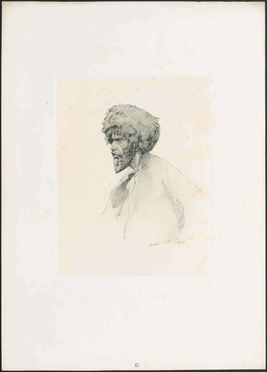 Bog med 65 tryk af kunstneren Horschelts tegninger af kaukasiske soldater, udgivet 1895 i Sankt Petersborg i Storfyrste Georg Mikhailovitj' udgave. Original titel på russisk og fransk: Кавказские походные рисунки Горшельта [Текст] = Etudes militaires faites au Caucase par Horschelt. - Санкт-Петербург : издание Великаго князя Георгия Михаиловича, 1895-. - 51 см. Fra Gudim-Levkovitj' Samling.