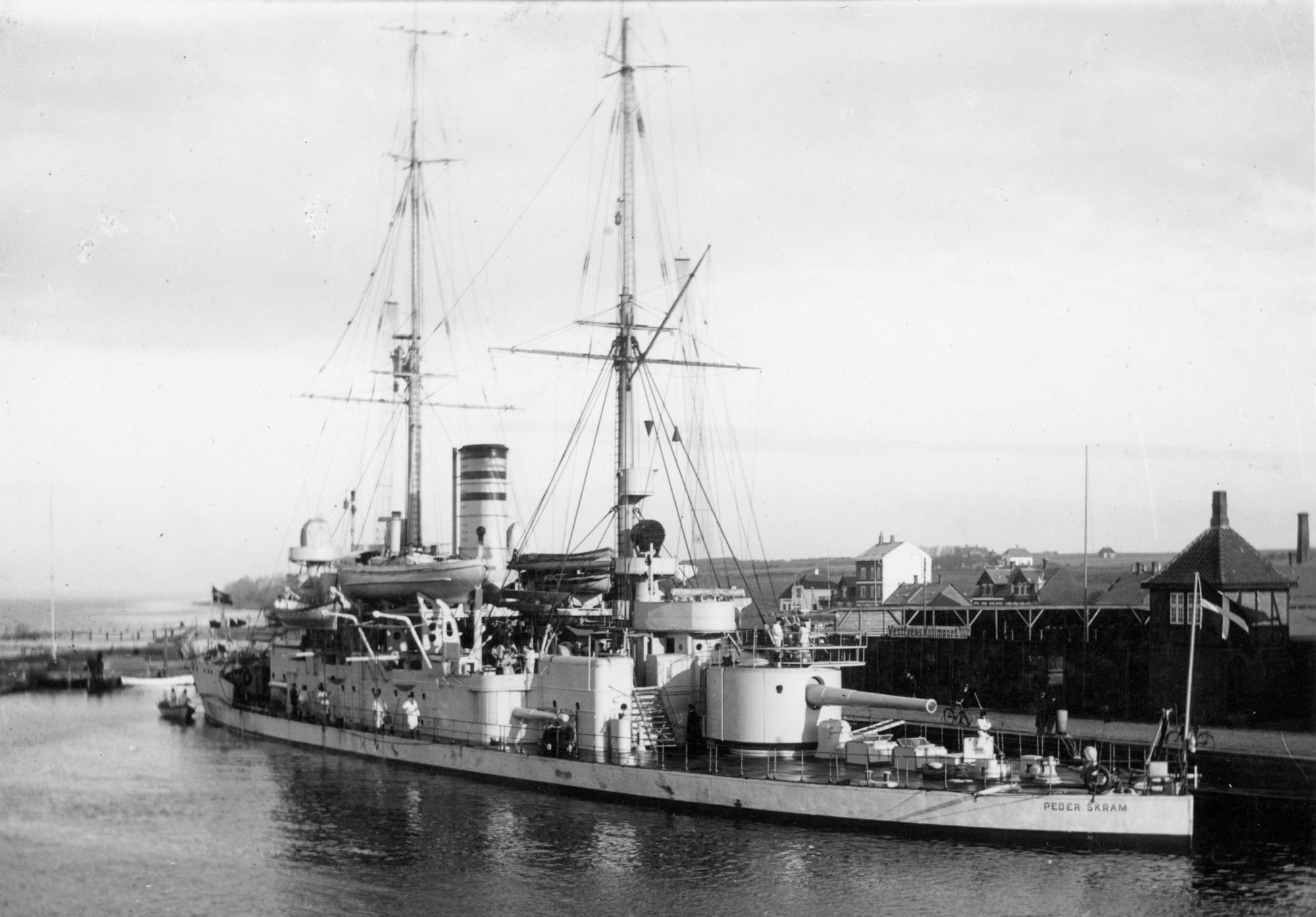 Fotostat: Kystforsvarsskibet "Peder Skram" (1908-1943), set mod bagbord agten for tværs.
