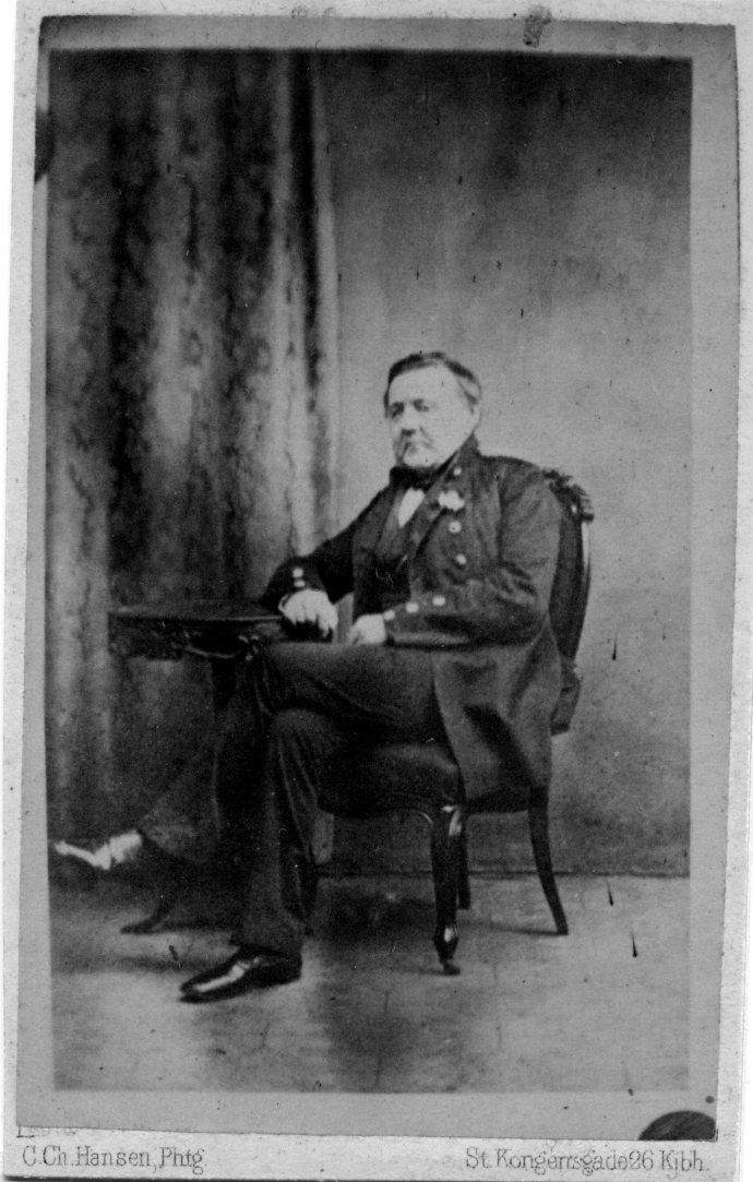 Foto: Steen Andersen Bille, f. 1797. d.1883. Viceadmiral, Marineminister. 9,1 x 5,6 cm.. Siddende, hel størrelse.