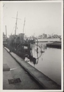 Diverse fotografier fra Holmen efter flådens sænkning den 29. august 1943. Disse fotos blev taget i hemmelighed og under stor personlig fare for fotograferne, idet Holmen var besat af Værnemagten. Fotografens/fotografernes navne er derfor ukendt.