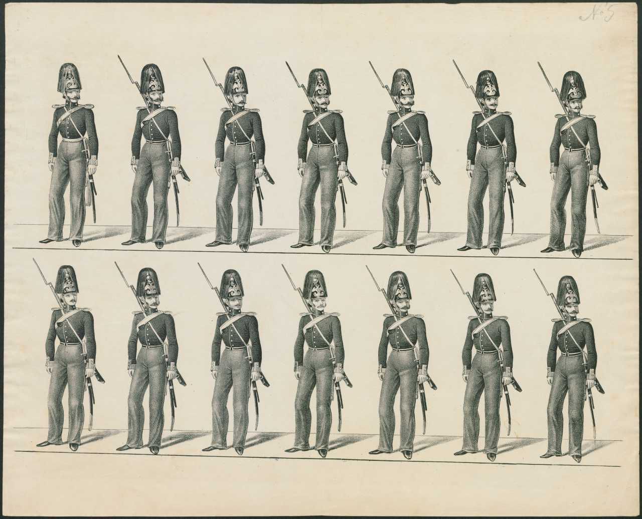 Serie af exercitsplancher for russisk infanteri og kavalleri, ca. 1820-30. Fra Gudim-Levkovitj' Samling.