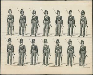 Serie af exercitsplancher for russisk infanteri og kavalleri, ca. 1820-30