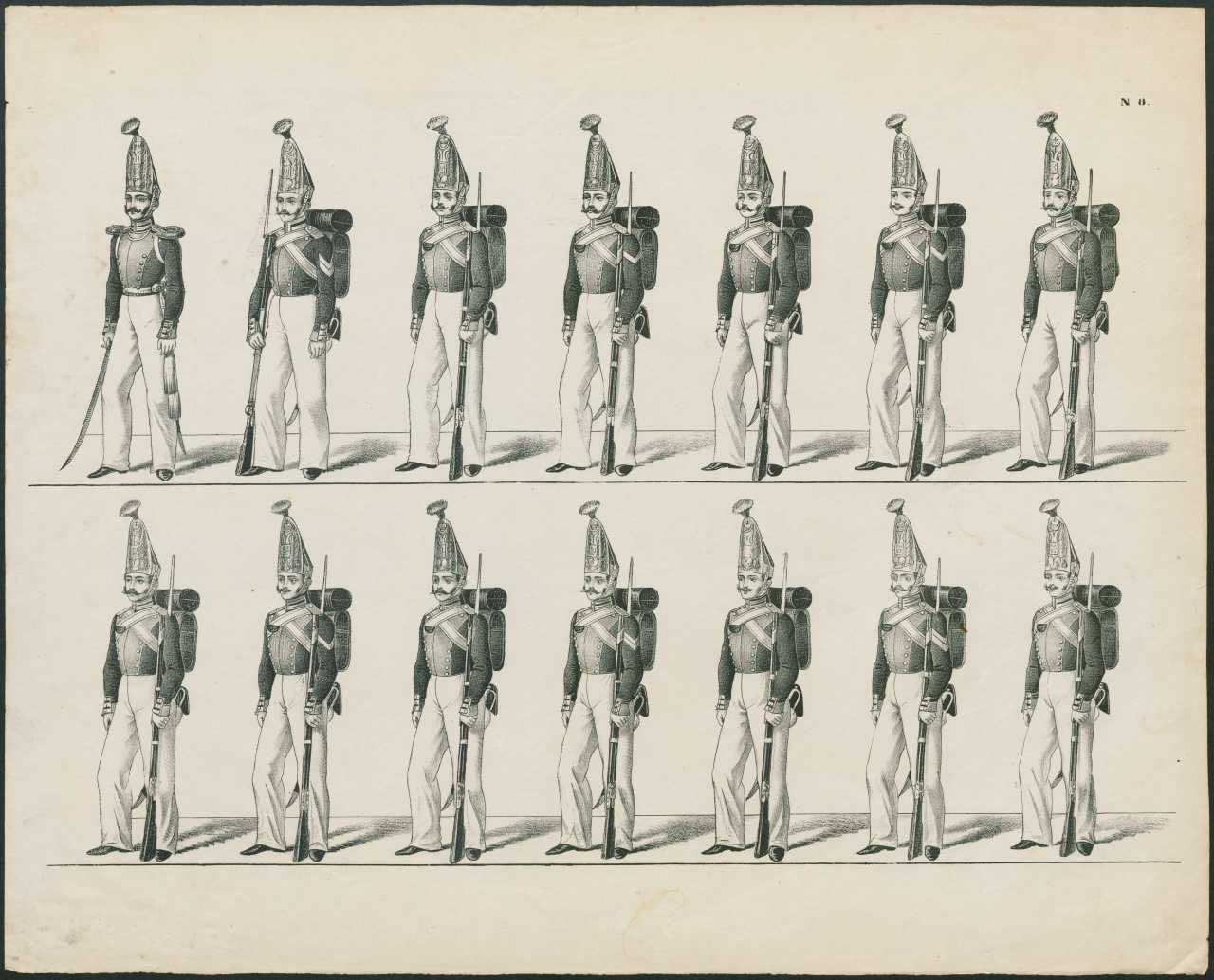 Serie af exercitsplancher for russisk infanteri og kavalleri, ca. 1820-30. Fra Gudim-Levkovitj' Samling.